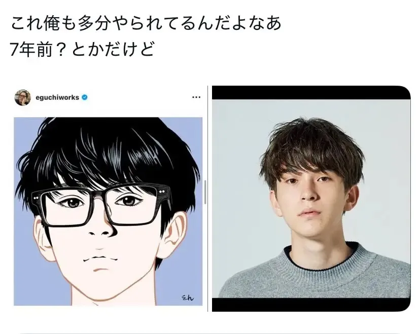Otro usuario también afirmó que Eguchi había copiado una fotografía suya para una campaña publicitaria de la marca de gafas Zoff . Aunque el artista no ha respondido a esta nueva acusación, varios seguidores han compartido comparaciones entre las imágenes y las ilustraciones publicadas. Ante el aumento de críticas, Eguchi comenzó a eliminar publicaciones de su cuenta en X sin emitir más declaraciones.