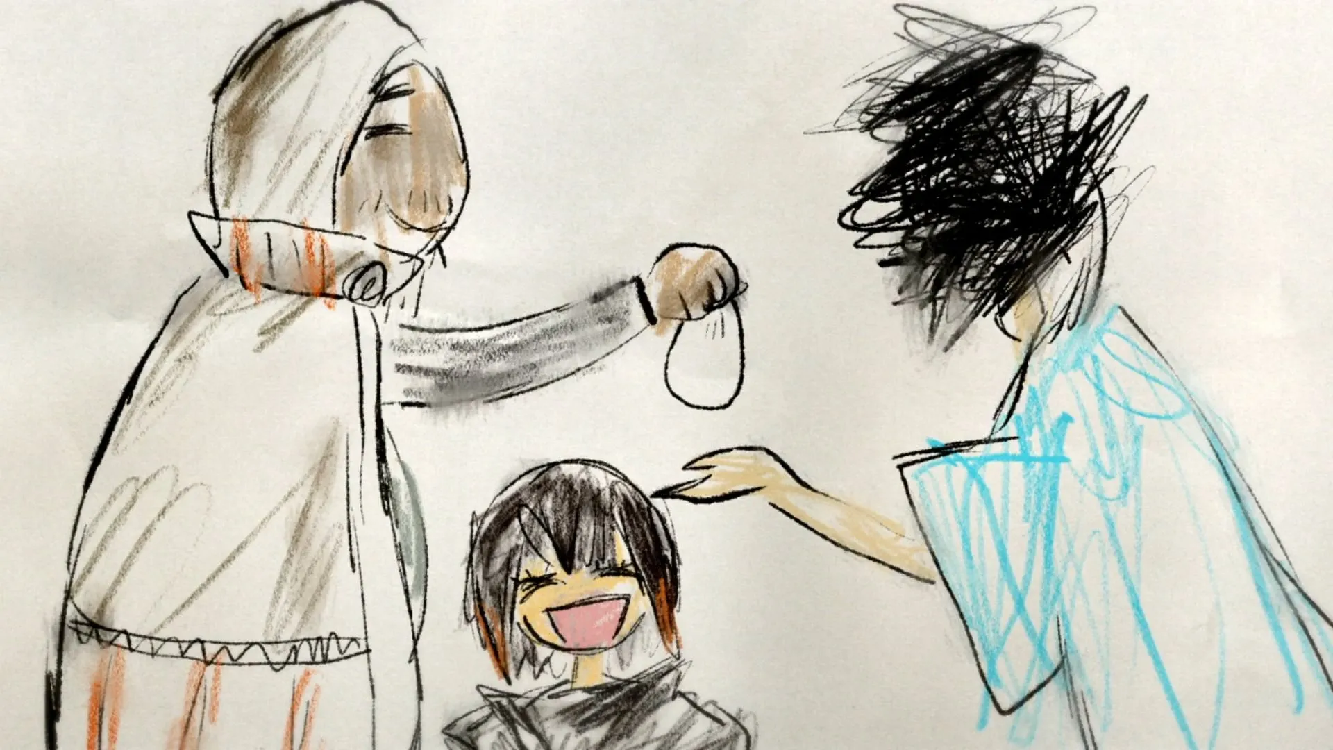 La producción destaca por su uso de secuencias animadas que imitan dibujos infantiles , un recurso visual que refuerza la fragilidad emocional del personaje. Estas escenas, extraídas directamente del manga original, fueron ampliadas en la adaptación animada para intensificar el contraste entre la apariencia colorida y la dureza del contexto.